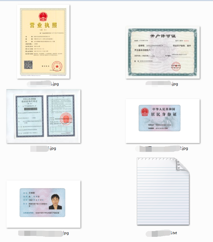 格式:支付宝账号|登陆密码|支付密码|支付密保|企业名称|企业身份信息|邮箱密码  附带5张照片